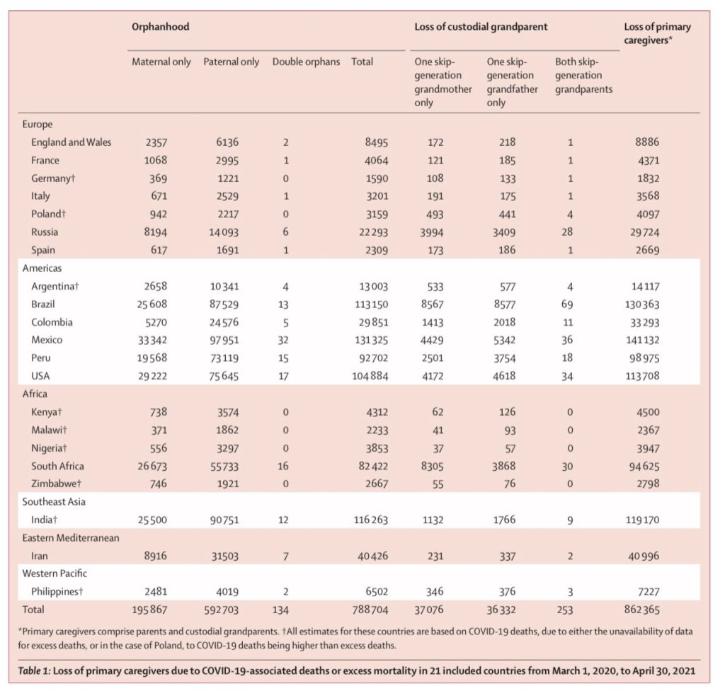 Sin embargo, The Lancet señala que durante el primer año de la pandemia, las acciones se enfocaron a la prevención, detección y respuesta a la infección provocada por el SARS-CoV-2, para reducir la morbilidad y la mortalidad. Sin embargo, advierte que la poca atención a las víctimas colaterales como son las niñas y niños que perdieron a uno o ambos padres, puede generar retraso en su desarrollo y elevar los niveles de abuso que sufren.