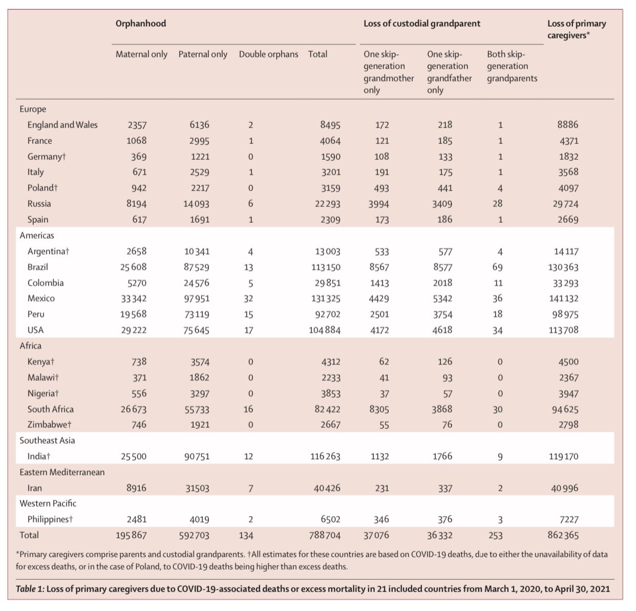 Sin embargo, The Lancet señala que durante el primer año de la pandemia, las acciones se enfocaron a la prevención, detección y respuesta a la infección provocada por el SARS-CoV-2, para reducir la morbilidad y la mortalidad. Sin embargo, advierte que la poca atención a las víctimas colaterales como son las niñas y niños que perdieron a uno o ambos padres, puede generar retraso en su desarrollo y elevar los niveles de abuso que sufren.
